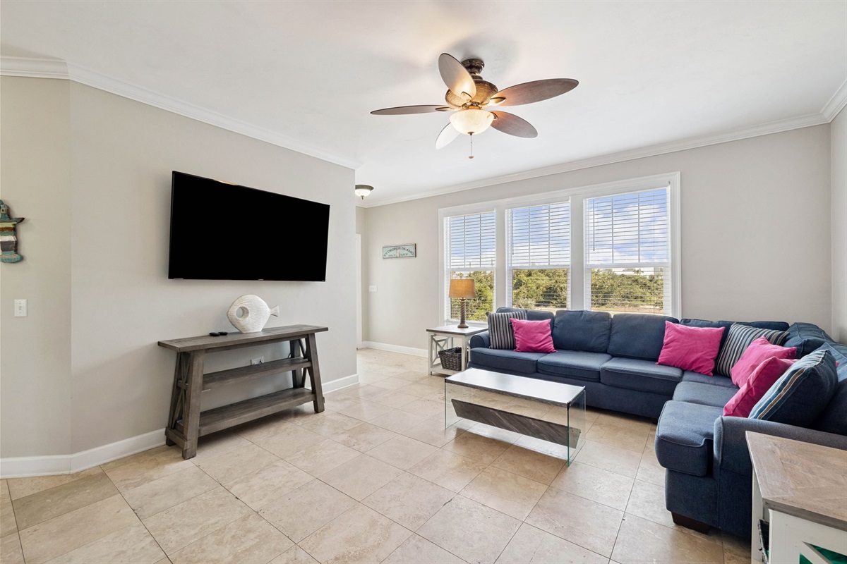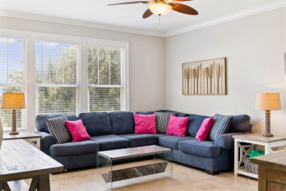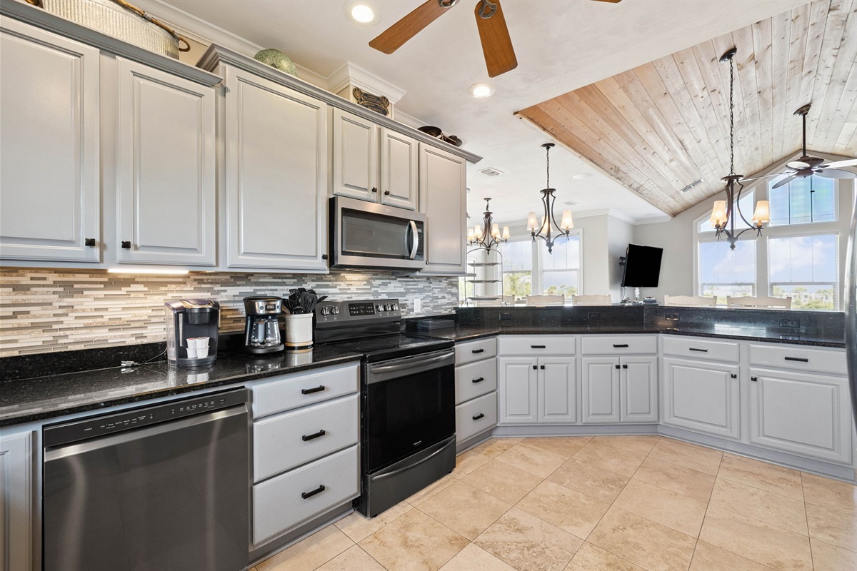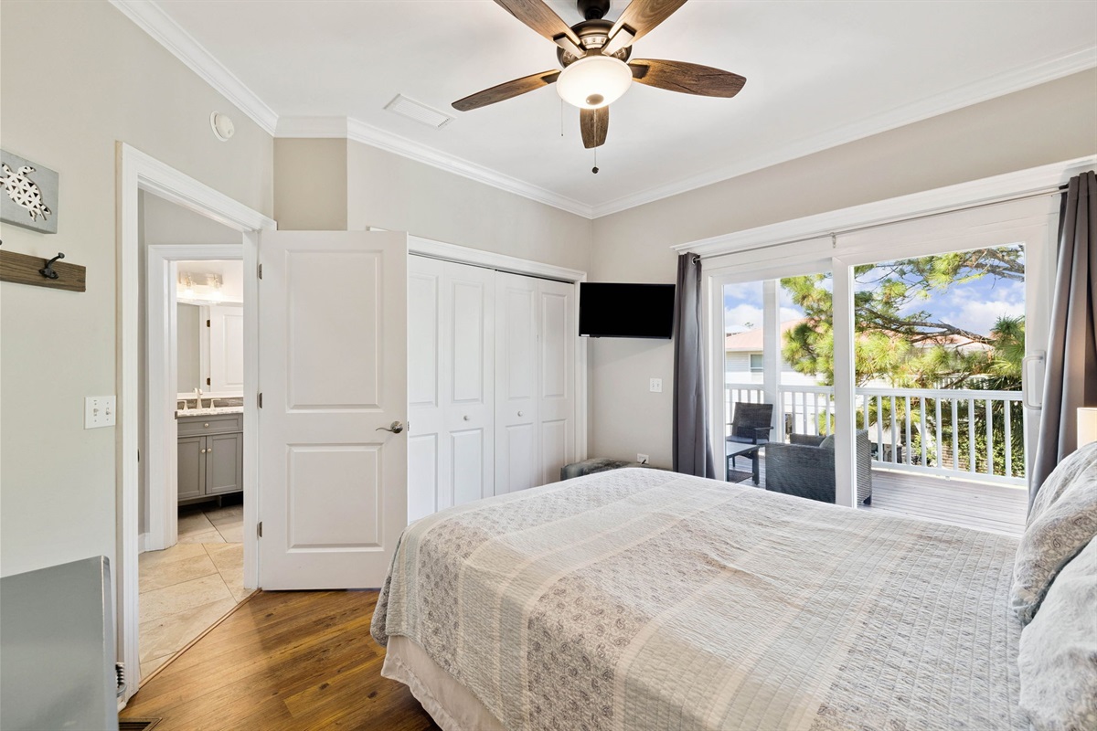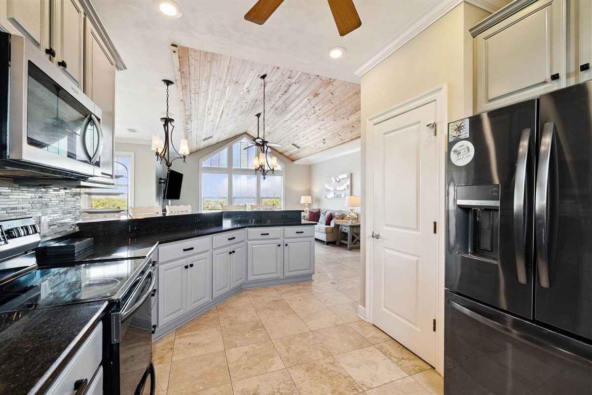 4 Bedrooms • 4 Bathrooms (3 full, 1 half) 4 Baths (3 full, 1 half) • Sleeps 10-12Enjoy all the Gulf has to offer at our spacious home on Saint George Island. Less than 300 steps is all it takes to lounge on the sand and frolic in the surf. The top floor great room features a vaulted ceiling and large windows to enjoy gulf views. The living area features a 55” flat screen TV and abundant comfortable seating, perfect for family gatherings. The fully equipped kitchen makes meal prep easy, the dining table seats eight and the large kitchen counter seats five. A large screened-in porch off the dining space is ideal for watching the gulf and has dining available for seven. There is one of two principal bedrooms on this floor with gorgeous gulf views, TV, king bed and en suite bathroom and shower. There is convenient half bath at the top of the stairs