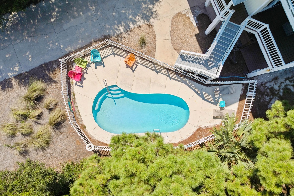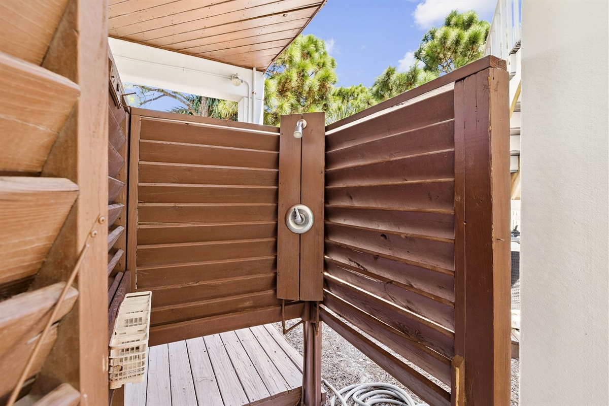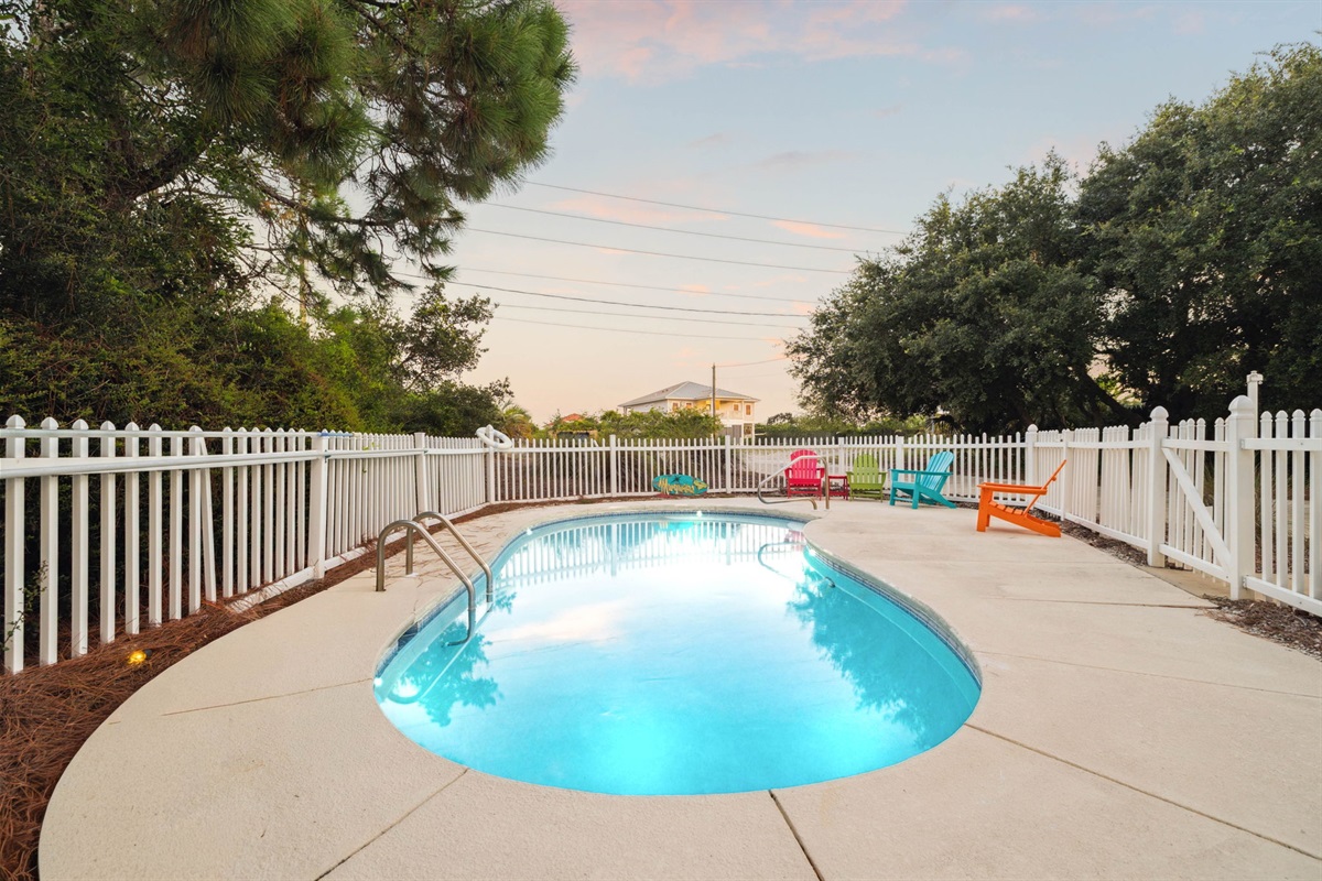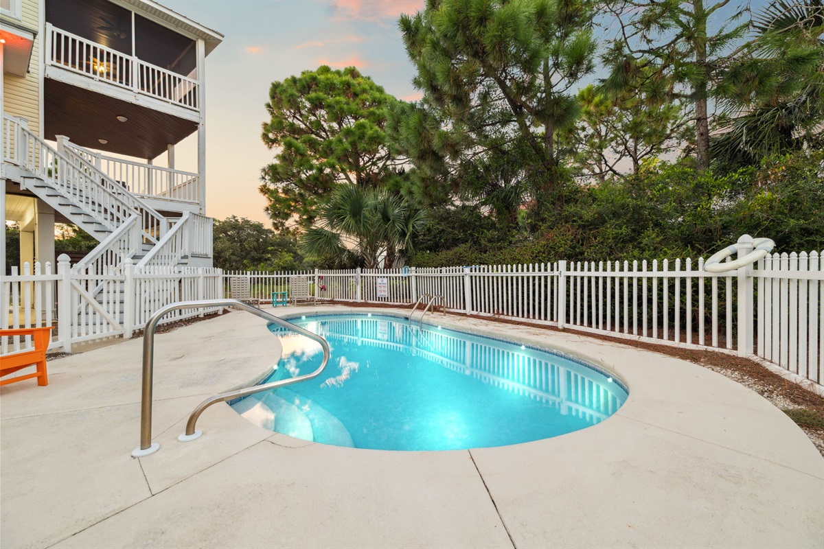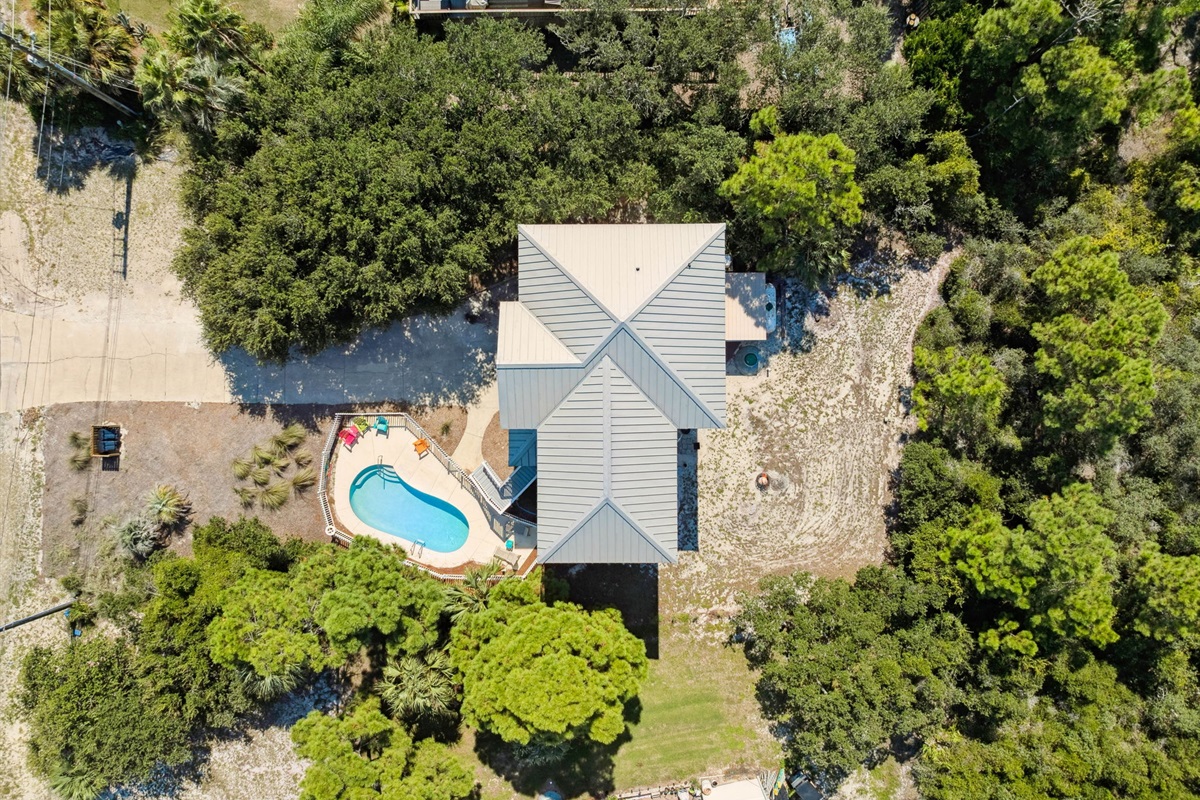 Outdoors on the ground level there is under house concrete parking, heated swimming pool, picnic table, park style grill, fire pit, enclosed outdoor shower, enclosed commode and fish cleaning station.
