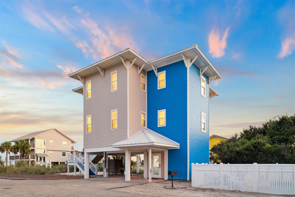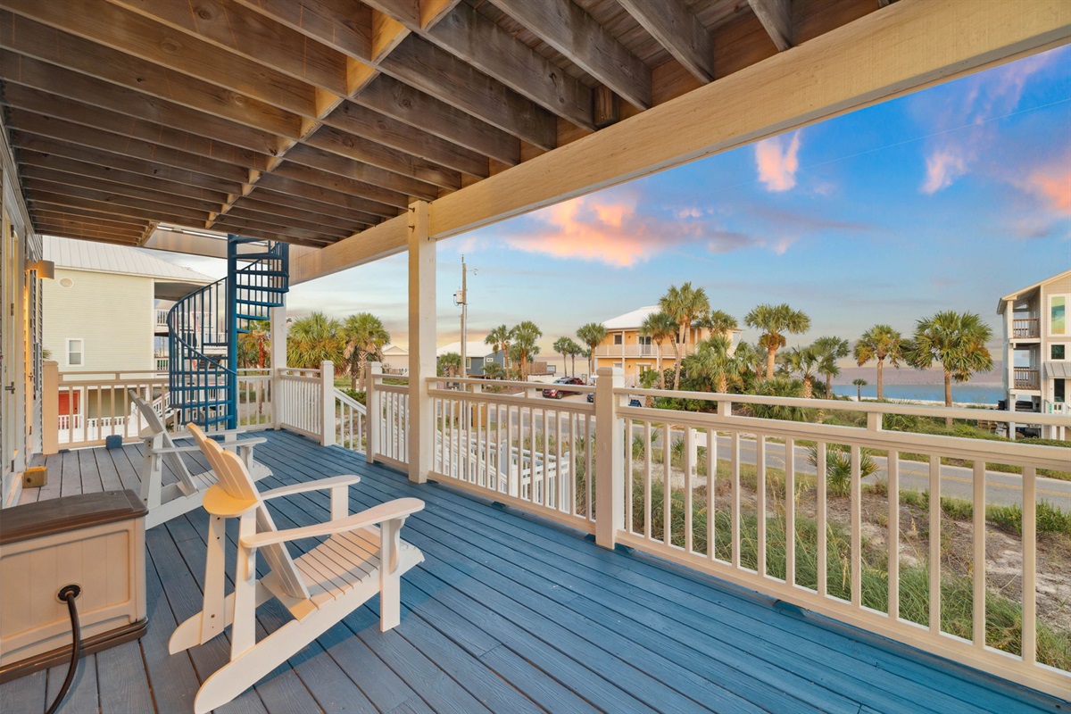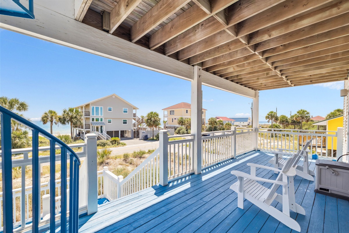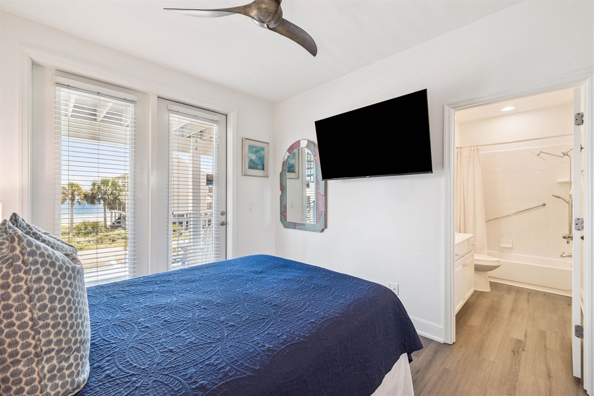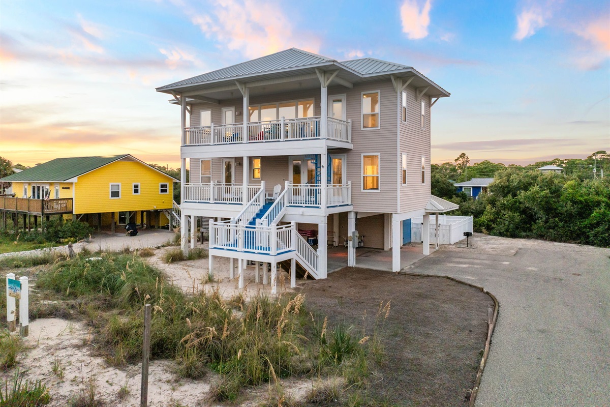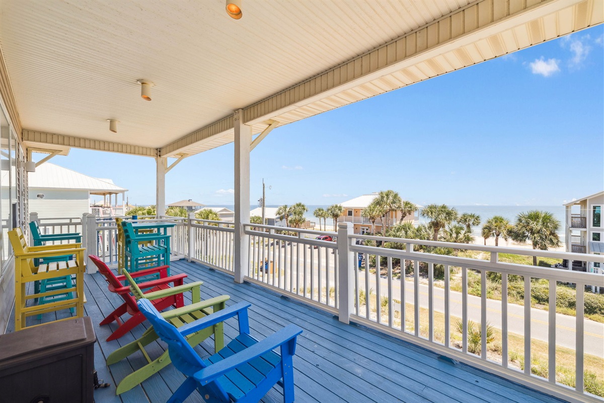 4 Bedrooms • 5 Bathrooms (4 full, 1 half) 5 Baths (4 full, 1 half) • Sleeps 1-12Welcome to our wonderful Blue Bicycle Beach House! Beautifully decorated 4 bedrooms, 4 and a half bath home located steps from sinking your toes in the gorgeous St George Island sand. This home is on the West end of Gorrie Dr and right across the street from the beach. This home boasts a private pool, several covered decks, enclosed hot/cold outdoor shower and fish cleaning station. The covered entry leads to the first floor that features 3 suites. 1 king suite, 1 queen suite, and 1 suite with two queen beds. This floor also includes a large covered deck. The second floor offers an open floor plan living, kitchen, and dining perfect for the family to gather. The airy living room offers comfortable seating and views of the Gulf. The dining table seats 8 with an additional 4 seats at the breakfast bar. The kitchen is well stocked and equipped with black stainless appliances. A half bathroom is located off of the dining room. The master suite is also located on this floor, featuring a king bed and a private bathroom.