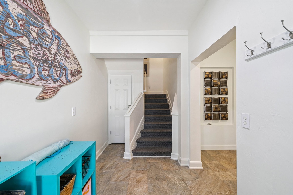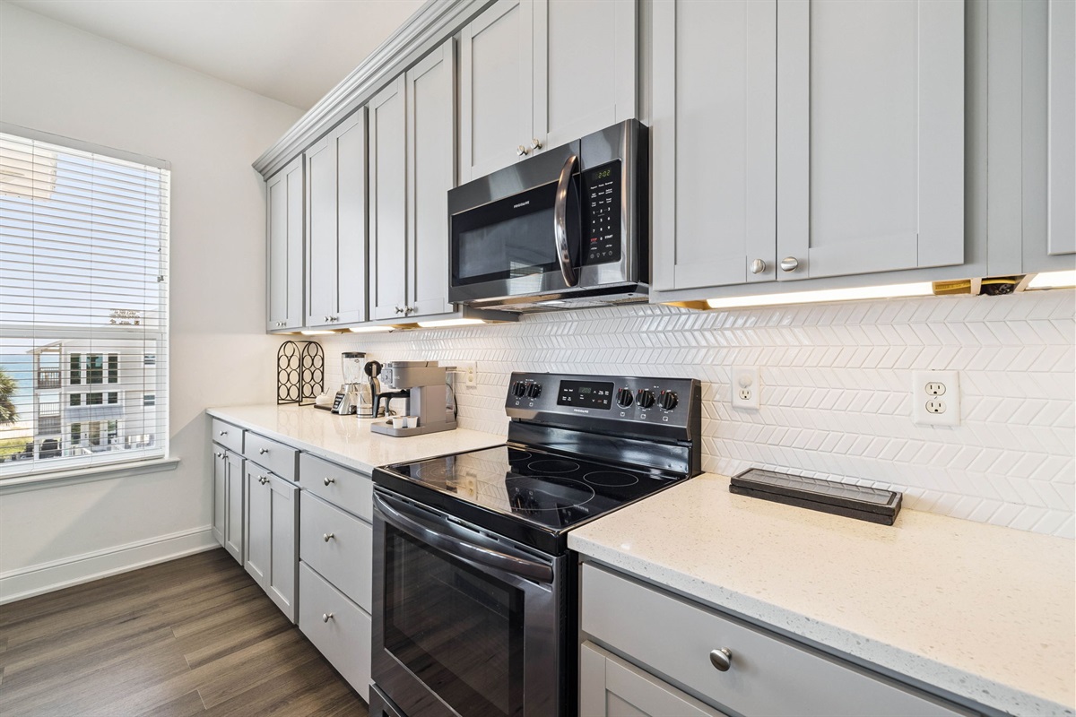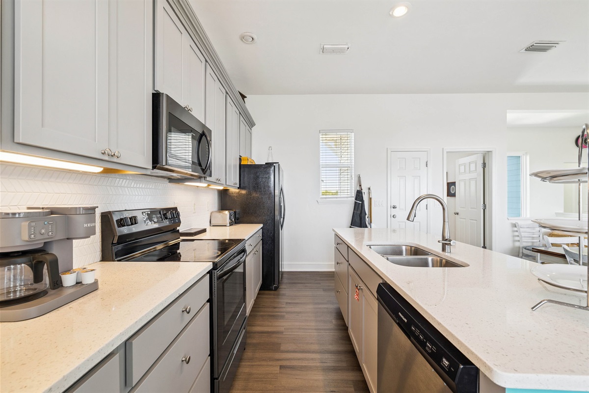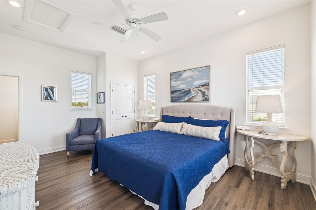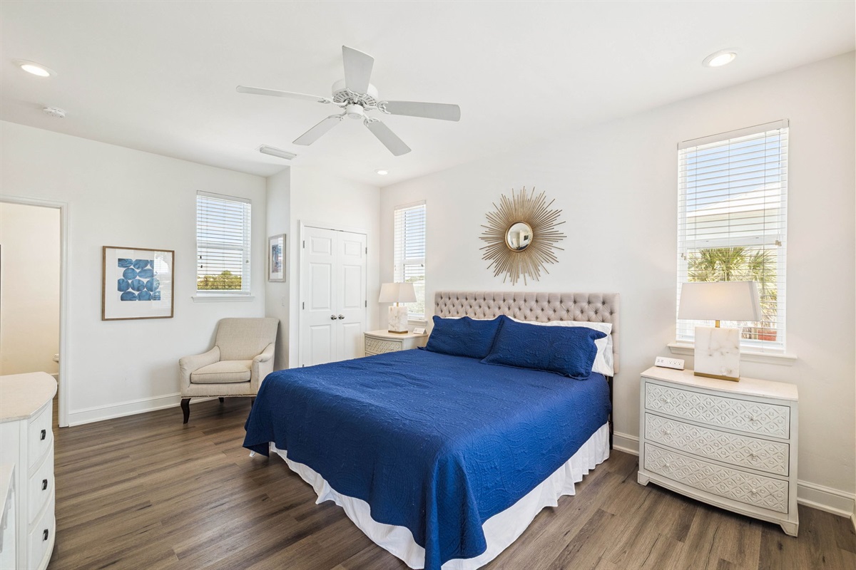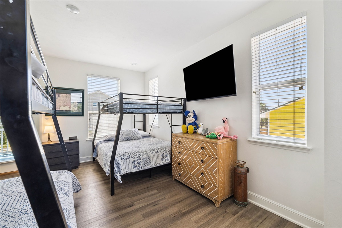 4 Bedrooms • 5 Bathrooms (4 full, 1 half) 5 Baths (4 full, 1 half) • Sleeps 1-12Welcome to our wonderful Blue Bicycle Beach House! Beautifully decorated 4 bedrooms, 4 and a half bath home located steps from sinking your toes in the gorgeous St George Island sand. This home is on the West end of Gorrie Dr and right across the street from the beach. This home boasts a private pool, several covered decks, enclosed hot/cold outdoor shower and fish cleaning station. The covered entry leads to the first floor that features 3 suites. 1 king suite, 1 queen suite, and 1 suite with two queen beds. This floor also includes a large covered deck. The second floor offers an open floor plan living, kitchen, and dining perfect for the family to gather. The airy living room offers comfortable seating and views of the Gulf. The dining table seats 8 with an additional 4 seats at the breakfast bar. The kitchen is well stocked and equipped with black stainless appliances. A half bathroom is located off of the dining room. The master suite is also located on this floor, featuring a king bed and a private bathroom.